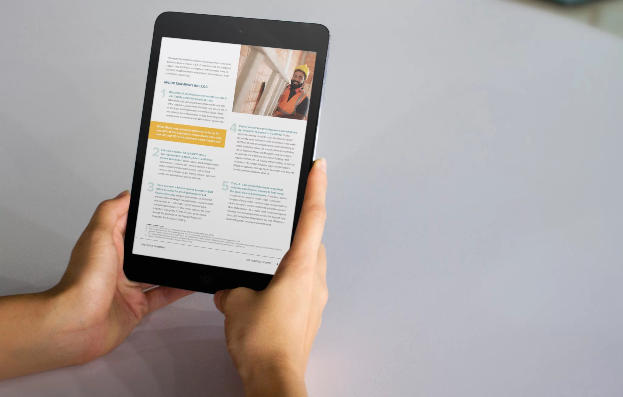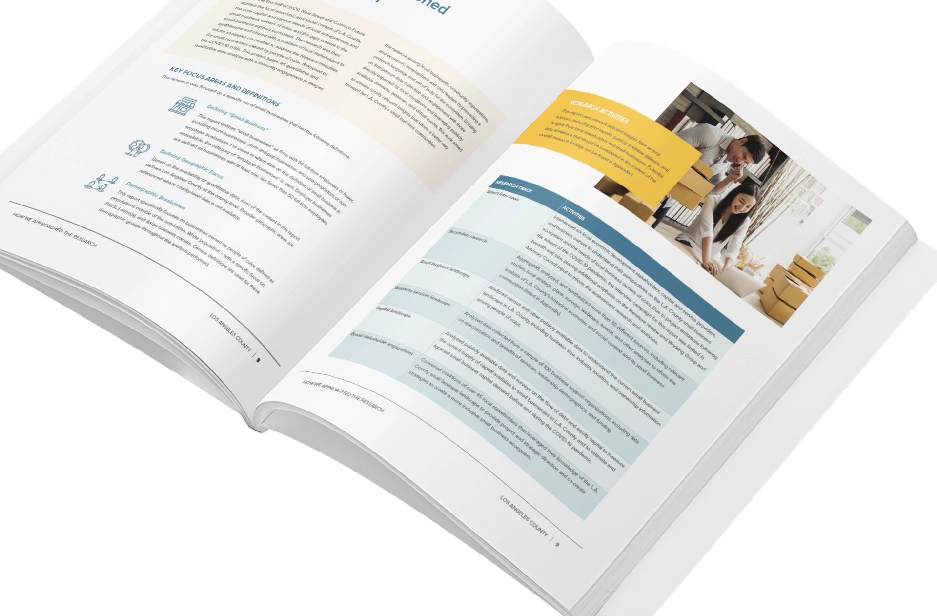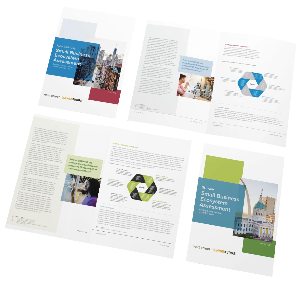 Talooka Studio was honored to design a series of research reports for Next Street, a mission-driven consulting firm focused on building a more inclusive U.S. economy. The Small Business Ecosystem Assessment, funded by JPMorgan Chase, examines the support systems available for minority- and women-owned small businesses in nine U.S. cities.